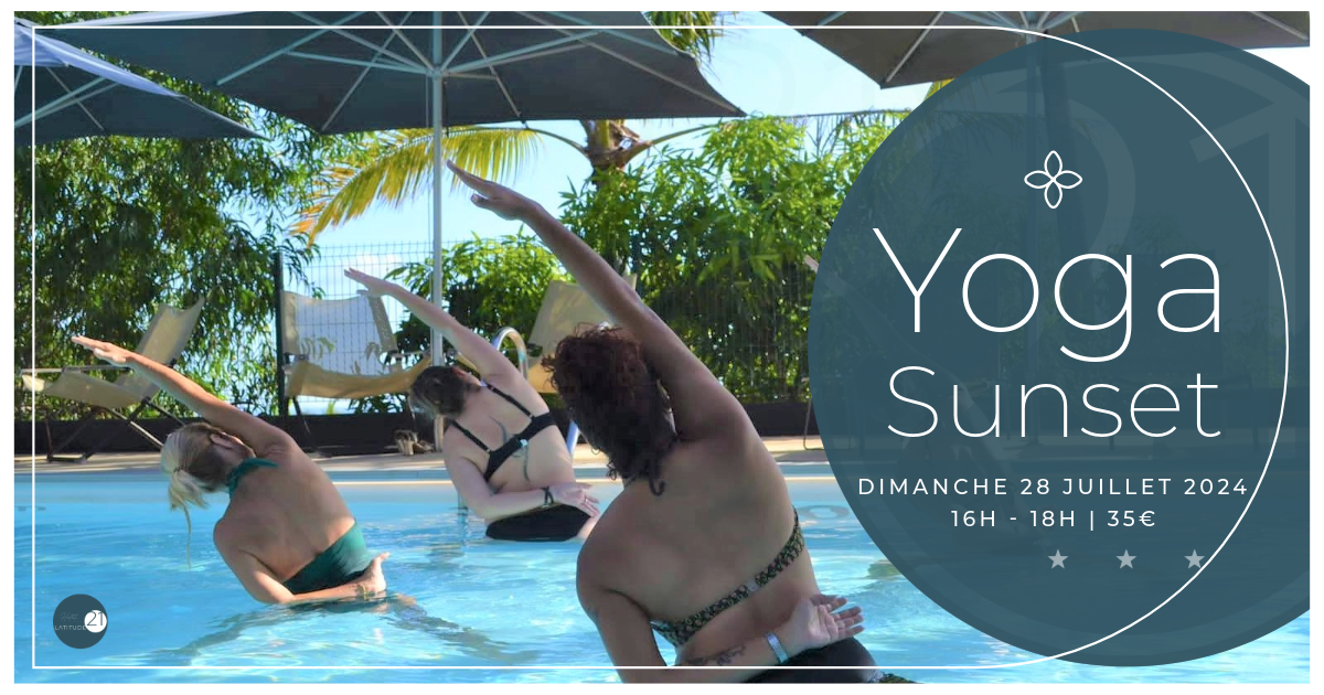 Le dimanche 28 juillet 2024, nous vous invitons à une séance d’AquaYoga spéciale, synchronisée avec le coucher du soleil pour une expérience de relaxation ultime. Pour 35 euros, vous pourrez profiter d’une heure de cours encadré par un professeur certifié, suivi d’un apéritif convivial avec boissons et planches apéritives, tout en admirant les couleurs magnifiques du coucher de soleil.